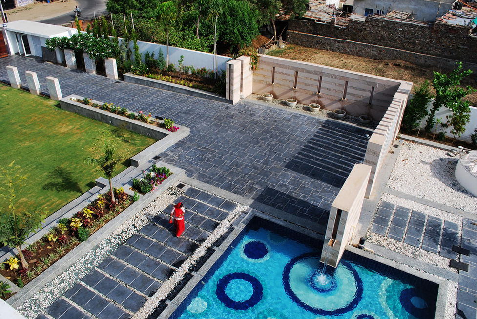 Udaipur- the beautiful city of lakes has its tradition of living in conversation with water. So, when LSDA was approached for landscape design of a house on a 2200 sqmt plot in Udaipur, the first reaction was to play with this very tradition, yet in a contemporary way.